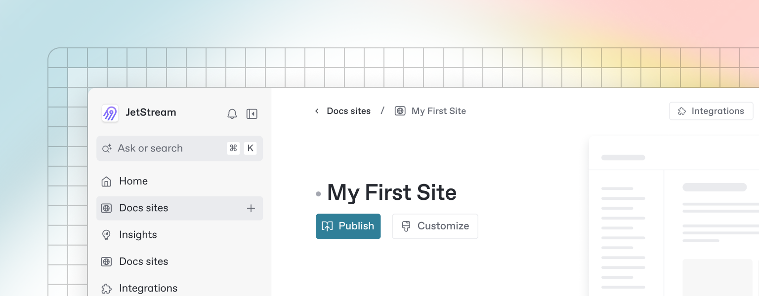 Once you’ve finished writing, editing, or importing your content, you can publish your work to the web as a docs site. Once published, your site will be accessible online only to your selected audience.